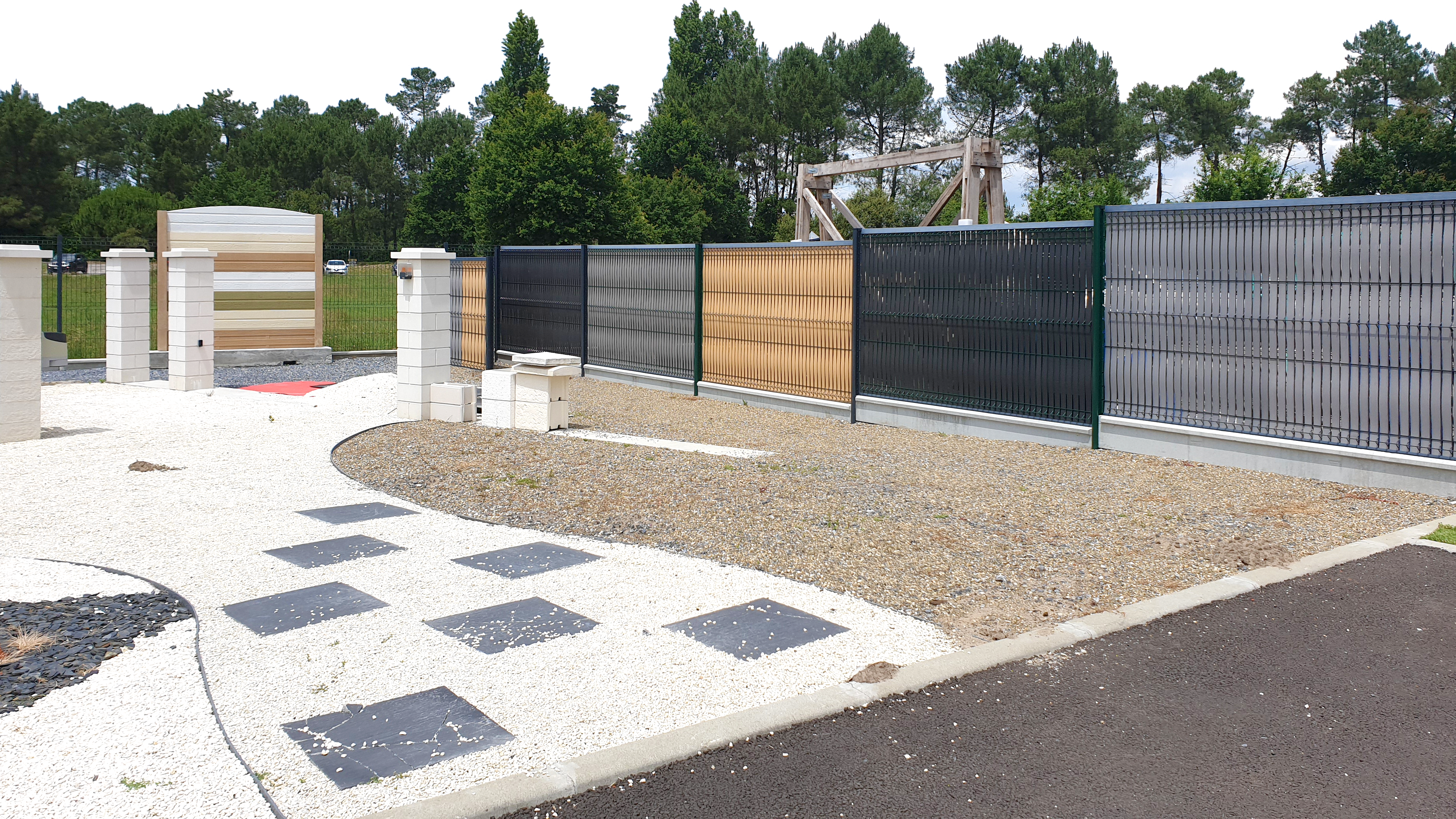 Poteaux, soubassements, portillons et occultants.